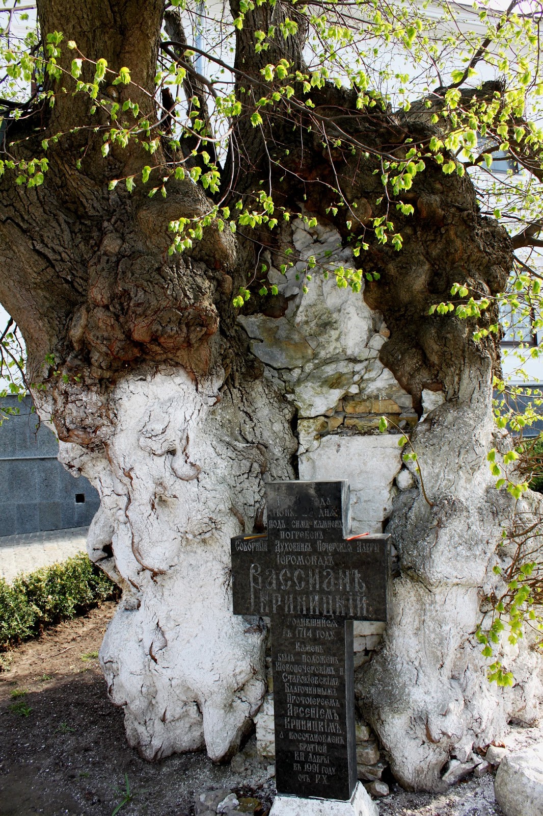 В Дальних пещерах после зимы ожила древняя липа Феодосия. Чтобы заделать огромную полость, в стволе построили целую кирпичную стену.